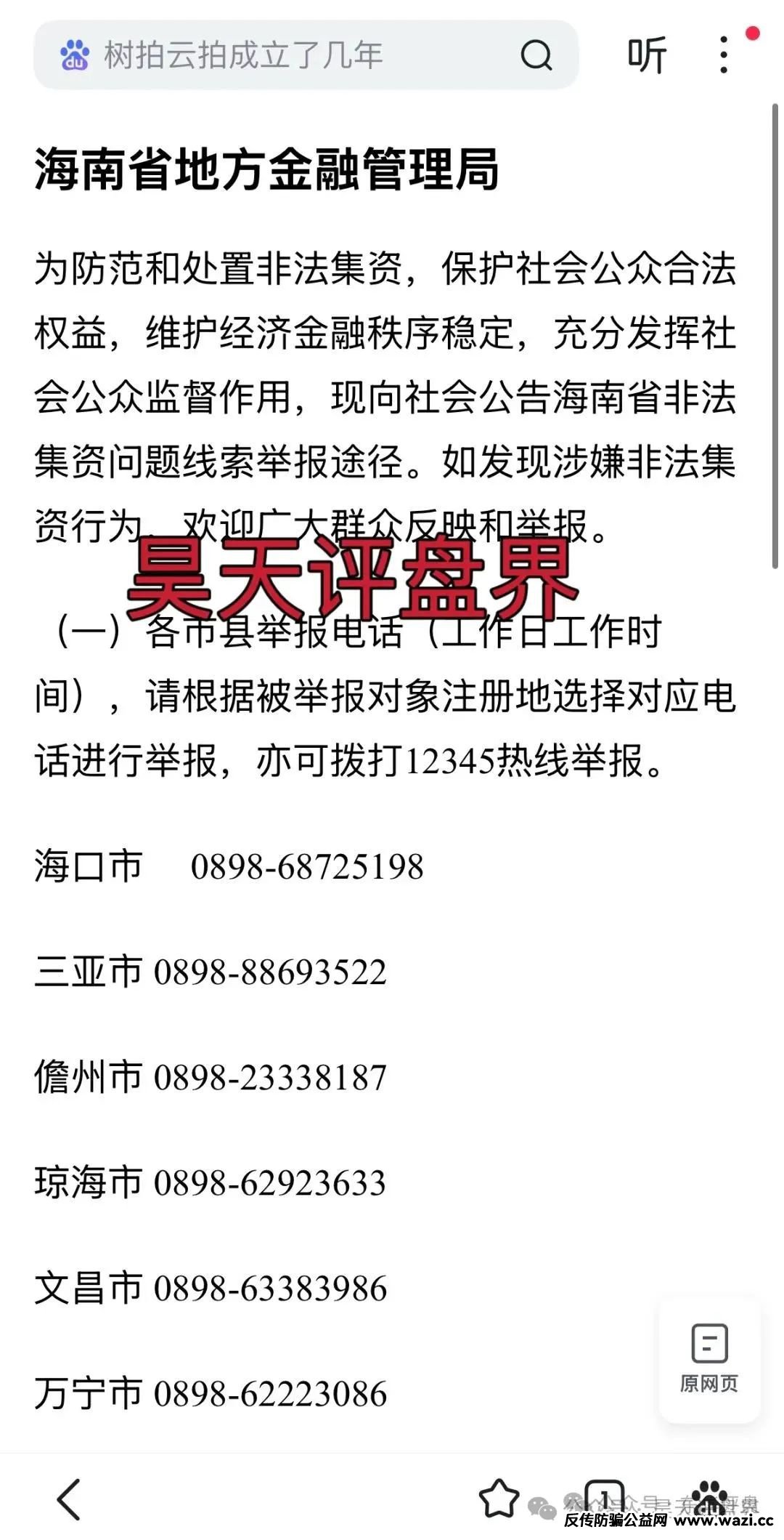 模式就不发了u进u出的资金盘骗局,前几天受害者联系昊天爆料昊天发了下面这些图,然后就有被洗脑的韭菜问他们怎么不去海南公司维权,今天昊天就告诉你为什么,因为受害者已经联系过海南管理非法集资的政府单位了,那边也已经派人去现场看了根本没人...