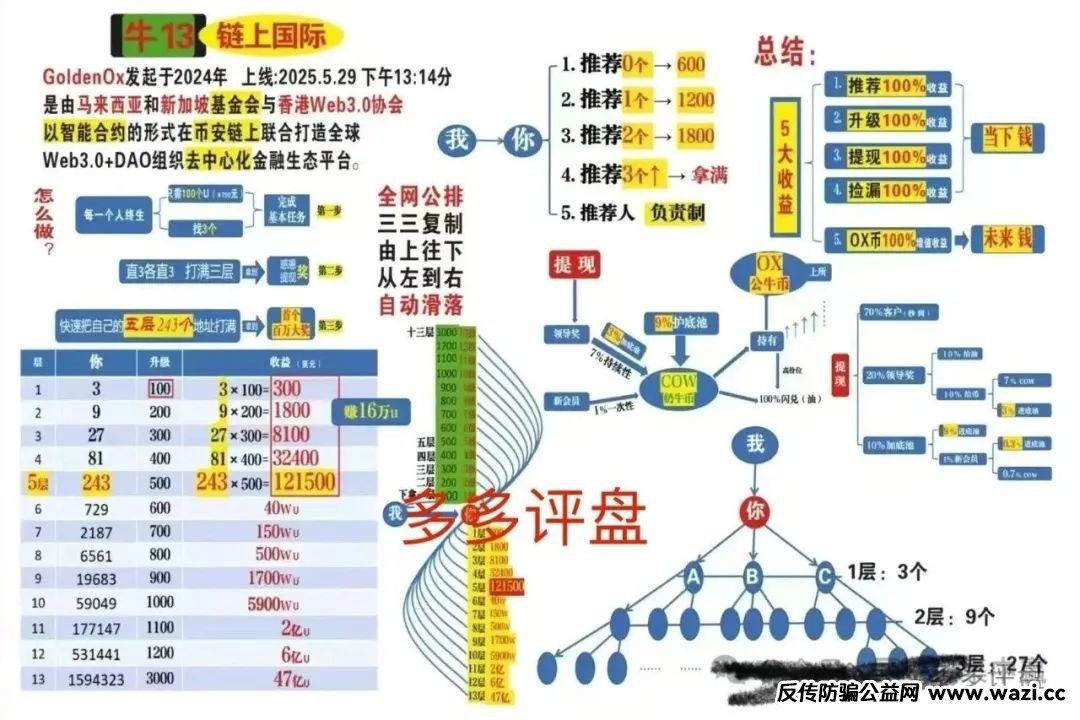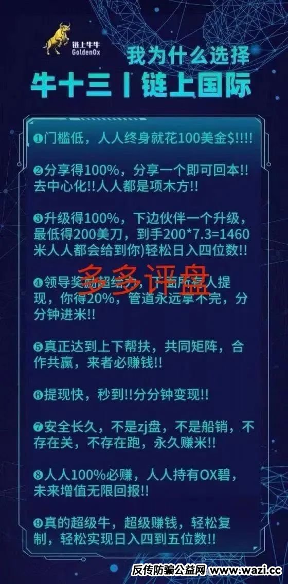 “牛 13” 区块链项目,币安链官方合作,Web3.0+DAO 组织,日收益 15%!” 去年冬天,这串数字垃圾像馊水般灌进炒币社群的喉咙。 “智能合约自动分佣” 是钓鱼钩,“去中心化金融革命” 是遮羞布...