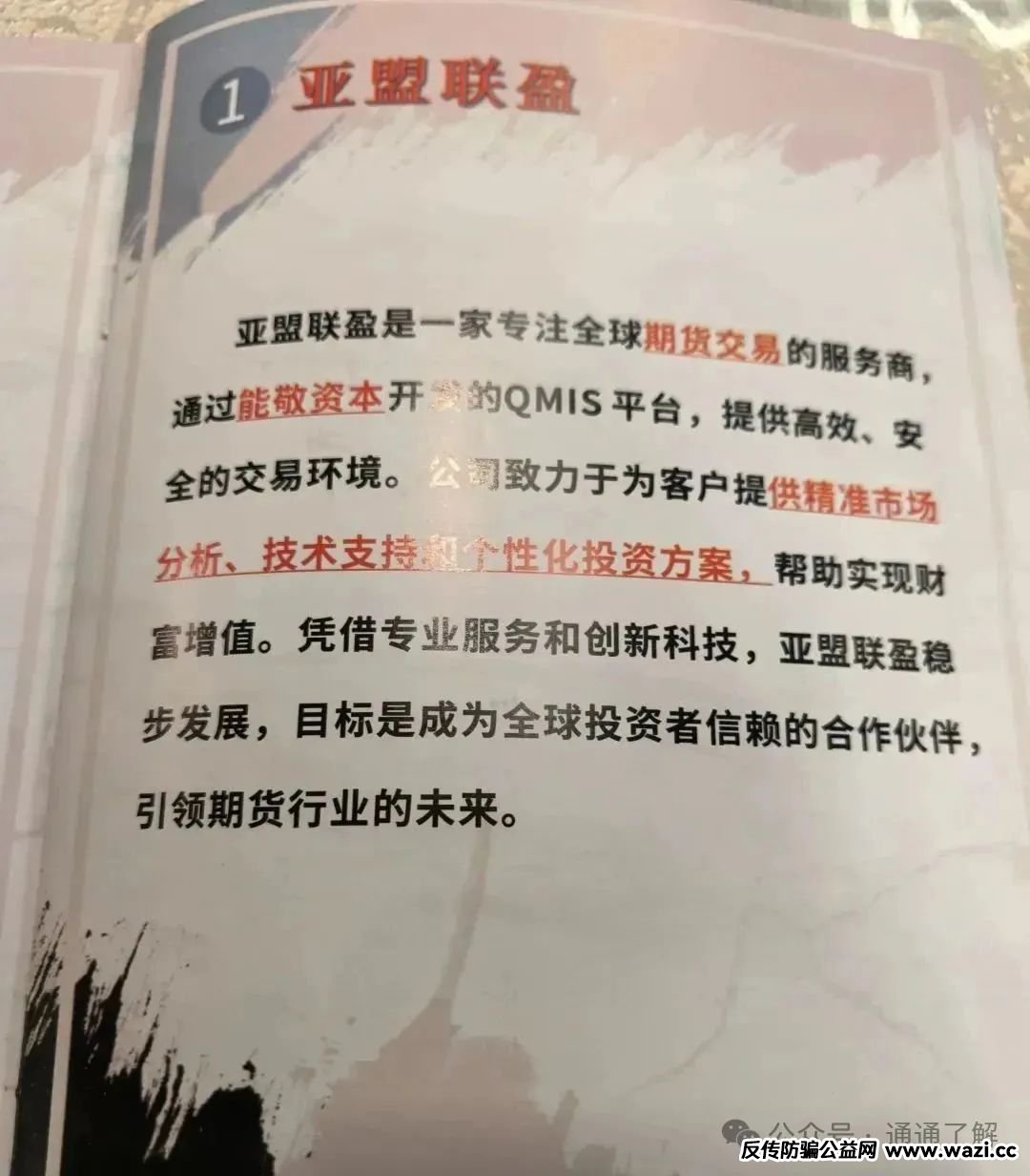 对“亚盟联盈”期货投资