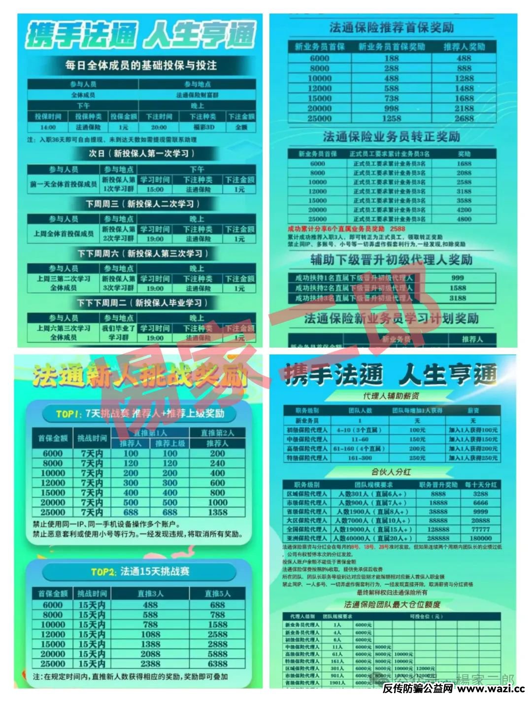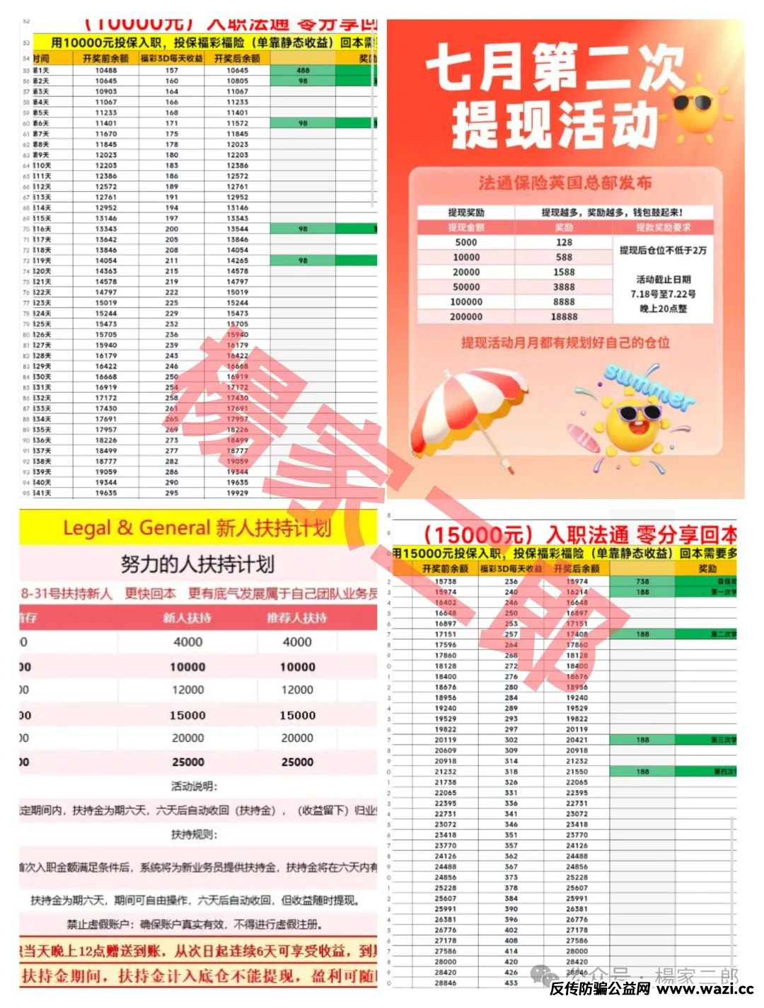 七月活动频繁,为崩盘跑路做准备,新人首充8000,送会员4000,推荐人4000,这么诱惑的活动,明显就是为了收割做准备。目前该平台已限制提现,让交196才能解锁提现,资金盘的老套路,二次收割而已,切莫再次上当受骗!此前其类似的“永明彩险”“保诚码险”项目已崩盘跑路,法通码险也难逃一劫在所难免!