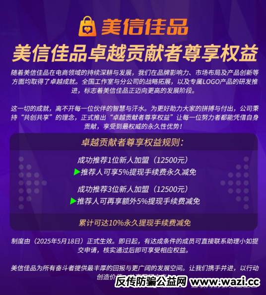 2025 年 3 月成立的美信佳品电子商务有限公司,宣称独创 “多方商业循环体系”,主打 “电商 + 理财” 双模式。其投资模式极具迷惑性: