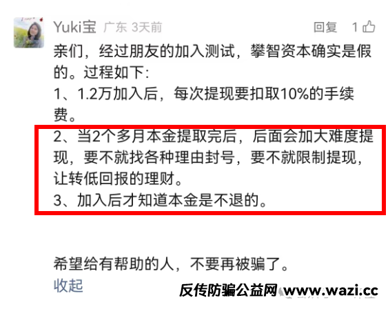 【攀智资本】资金盘骗局单割速度越来越快,投一万二2才10天就被割!