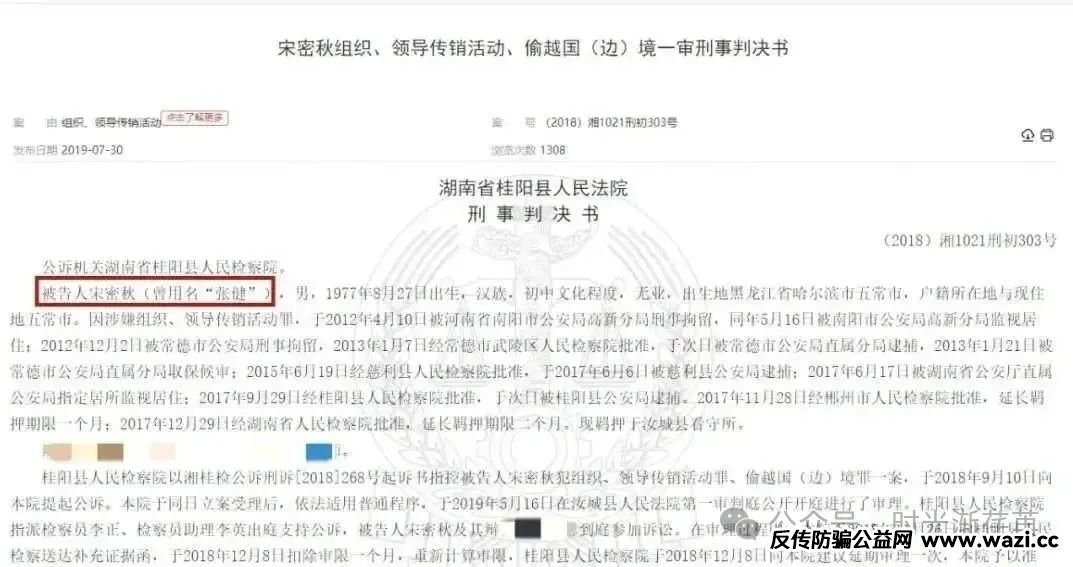 “中国云数贸”的骗局并非突然出现,其背后的操盘手宋密秋(化名张健),早在2019年就因组织传销活动被判刑。