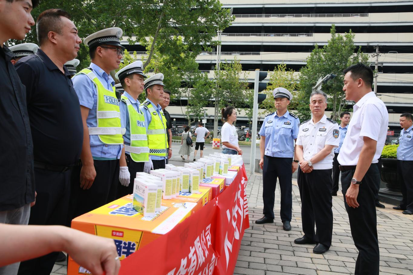 爱心企业为宝鸡金台、渭滨、高新、陈仓等大队一线执勤交警送去了400件矿泉水、100箱方便面和藿香正气水等防暑降温物资,向他们在高温天气下的辛勤付出表示感谢。