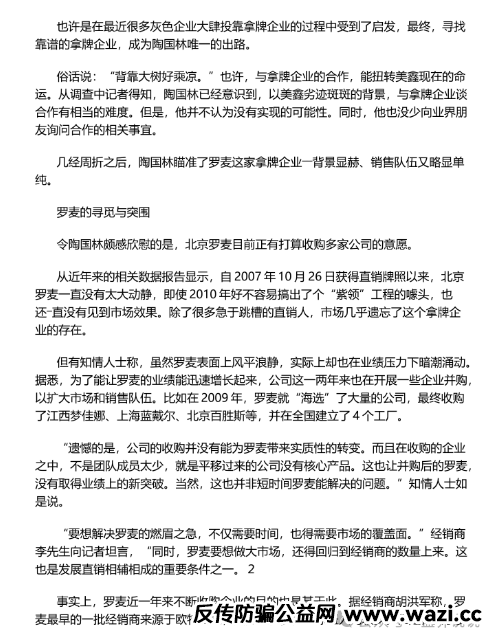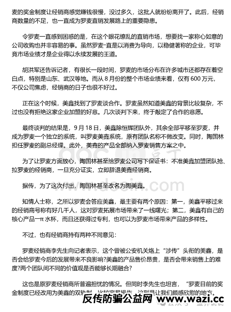 以上内容来源于2009年,之后陶美鑫在操盘罗麦期间,因为是商品加传销模式的原因,还被电视台曝光,并且其推广的产品甚至被曝出,有人吃后至残。因此躲藏几年之后,改名陶国林再次开盘“创业天下”。