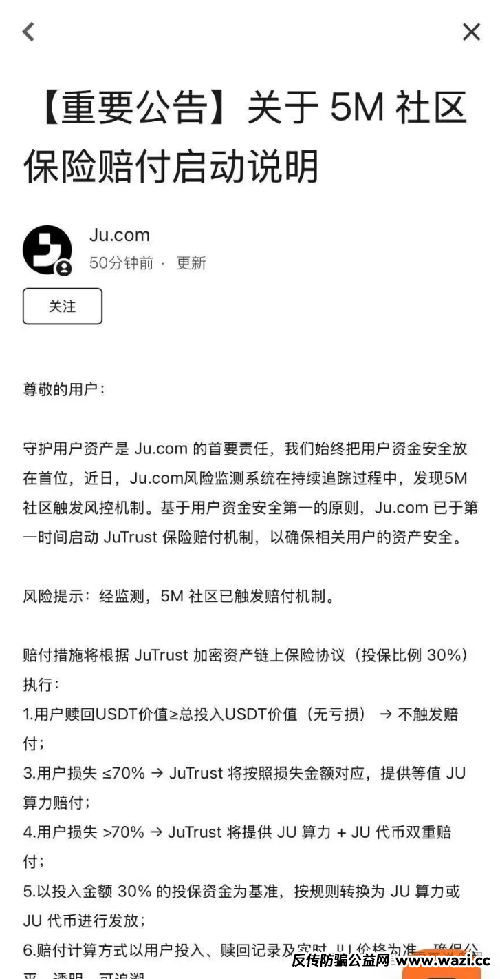 这回聚币JU是真崩了,凌晨直接暴跌70%,连带5M协议也玩完。震哥之前反复提醒这野鸡交易所不靠谱,天天有人投诉,现在果然出事了。