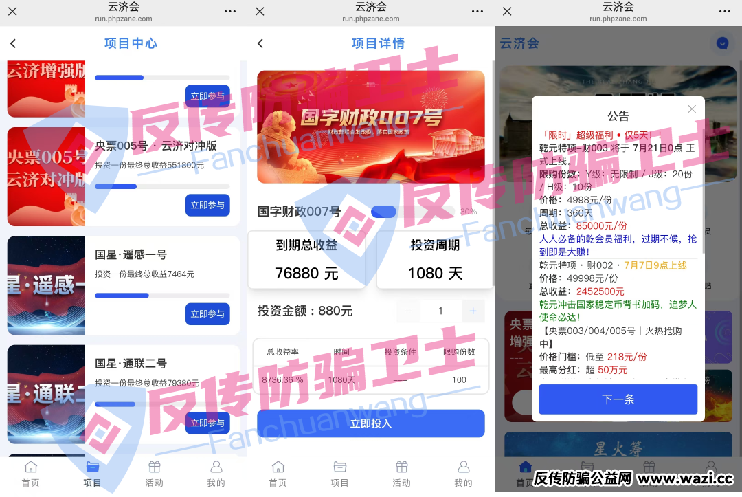 6、虚构 “云济会” APP:谎称 “国家拨款 400 亿支持上市”,推 “复购返 10%”“充值送 5%” 活动,靠拉新维持收益。
