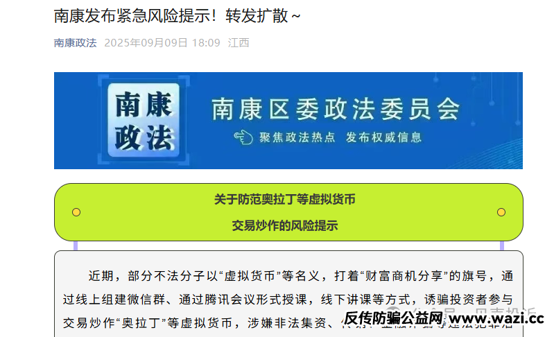 2、南康政法也是发布奥拉丁紧急风险提示!