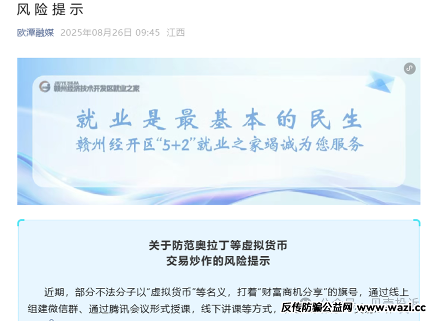1、2025 年 8 月至 9 月,江西官方媒体 “欧潭融媒” 及赣州经济技术开发区管委会接连发布风险提示,直指 “奥拉丁”(Origin)虚拟货币项目涉嫌非法集资、传销和金融诈骗。