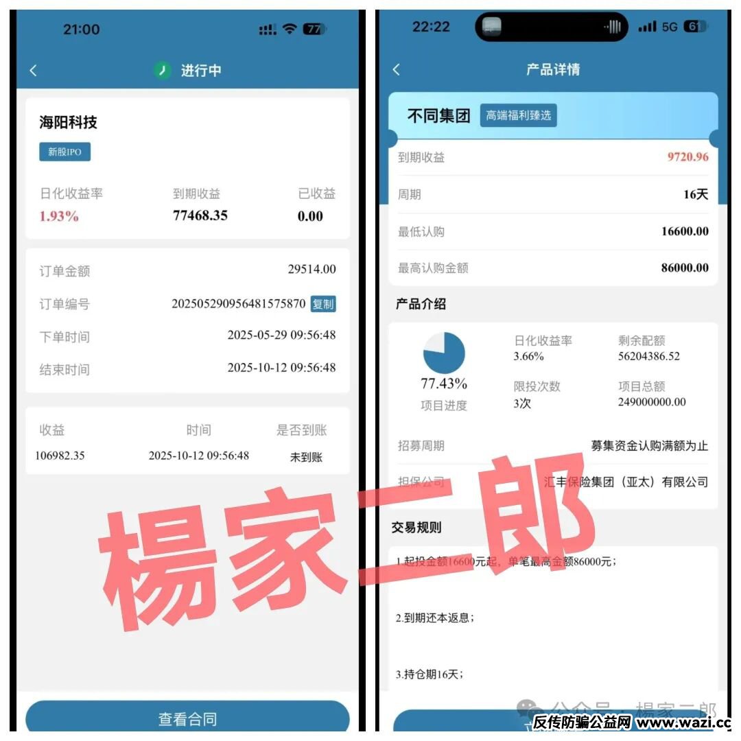 据粉丝透漏“乐瑞资本”和“汉领资本”出自同一个项目方操盘手,乐瑞9月3日已经断网跑路,汉领资本最近新出的长期超高收益产品,足以证明该骗局已进入末期,做好了随时崩盘跑路的准备!