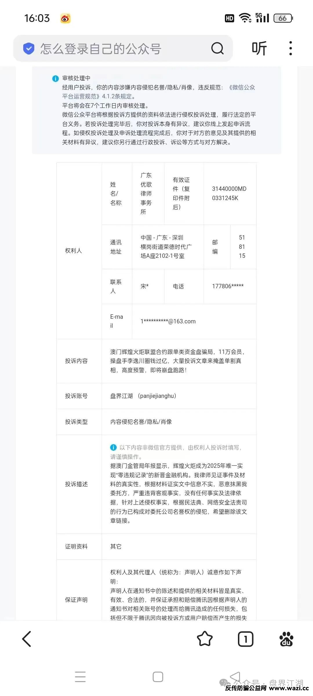 近期此骗局的诈骗团伙也是找了个所谓的傻x公关冒充人家“广东优歌律师事务所”来大量投诉反诈文章,大家也不想想哪个律师事务所敢接这种诈骗团伙u进u出的单子啊,从投诉内容看出,这是不符合律师事务所办案流程的,是网络水军盗用“广东优歌律师事务所”的营业执照等手续来进行的投诉,同行们,赶紧向警方报案吧!请腾讯公司在审查文章的时候,联系广东优歌律师事务所核实,以免被水军误导!随便举报昊天会一直曝光直到崩盘跑路,直接上证据: