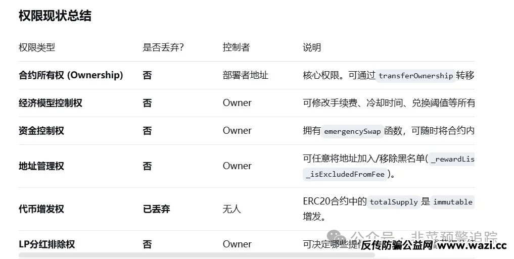 永恒协议宣称丢弃全部权限,营造去中心化假象,实则智能合约代码藏后门。在特殊函数调用或条件触发时,项目方或许能重新获取控制权,如同过往出安全事故的项目,前期权限分散,危机时项目方却能借隐藏代码主导局势,让用户资产面临风险。投资者切勿被其宣传迷惑,保持警惕,避免财产受损。