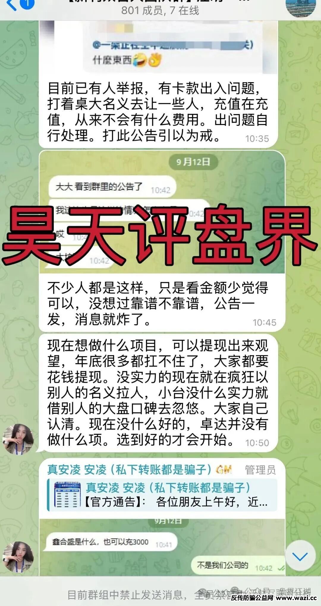 跟单类资金盘骗局,典型的一轮圈杀猪盘,冒充老卓余孽的名义进行开盘诈骗,高度预警,即将崩盘跑路...