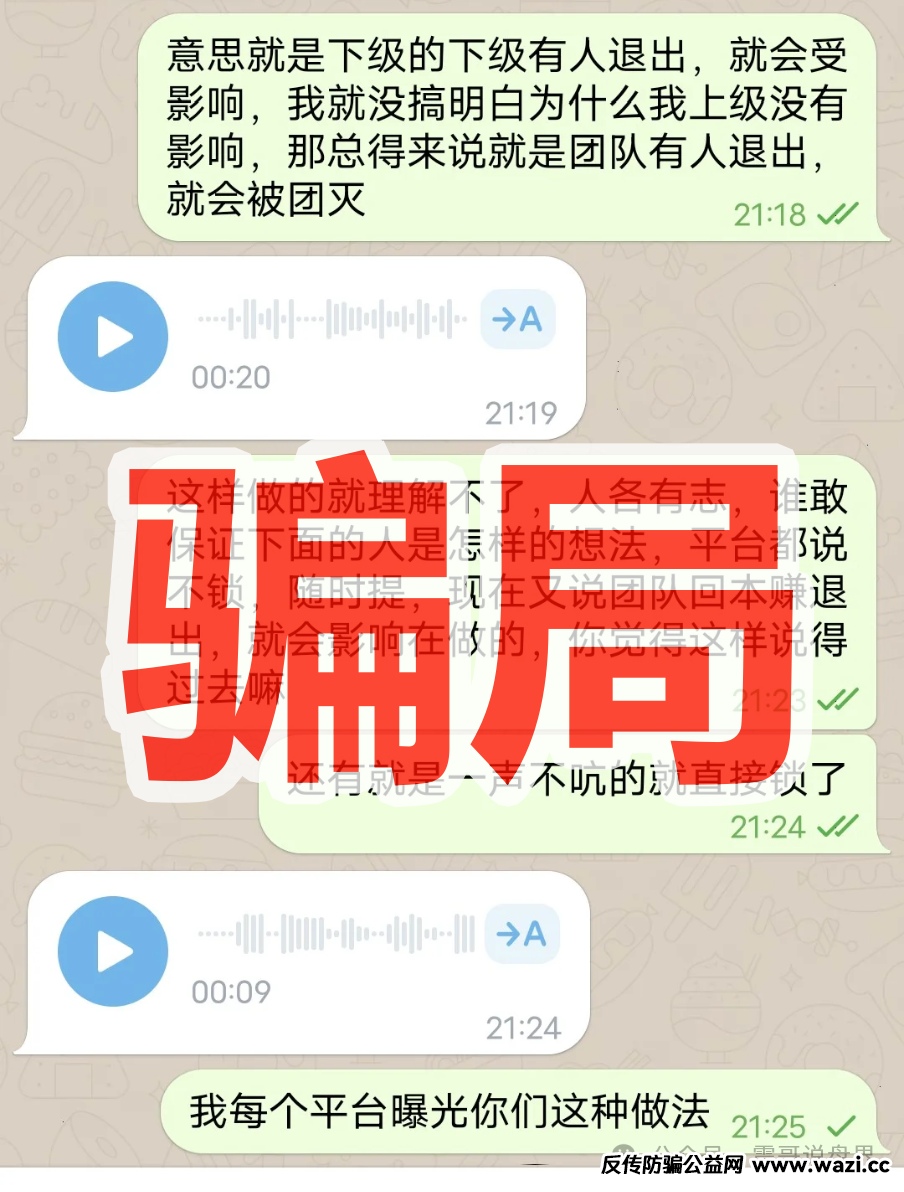 听受害者说,这平台才开40多天就开始割韭菜了。说好的随进随出都是骗人的!只要你团队里有人想提现,直接就把整个团队账号全封了!这也太没底线了吧?典型的杀猪盘套路,估计离跑路不远了!