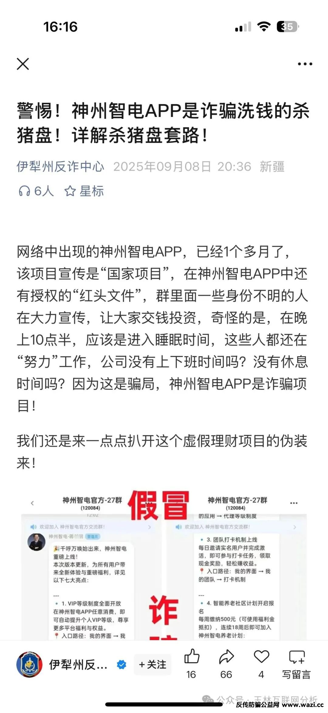 富域鑫云股票骗局 之前也是预警过几次,昨日已经彻底崩盘跑路了,维权中... 冒充的“神州智电”app骗局 多地官方官方预警,典型的杀猪盘,看见一定要远离... 金耀鼎WIN交易所骗局 跟单类资金盘...