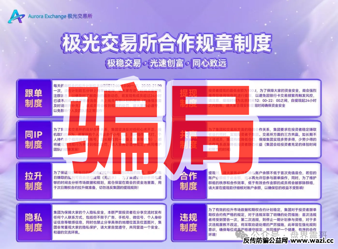 各位粉丝,最近震哥我可听说了不少事儿,好多人都跑来跟我爆料一个叫“极光交易所”的玩意儿。说白了,这就是个合约跟单的资金盘骗局,而且是以前那个“阿联酋中国商会”骗局换了个马甲...