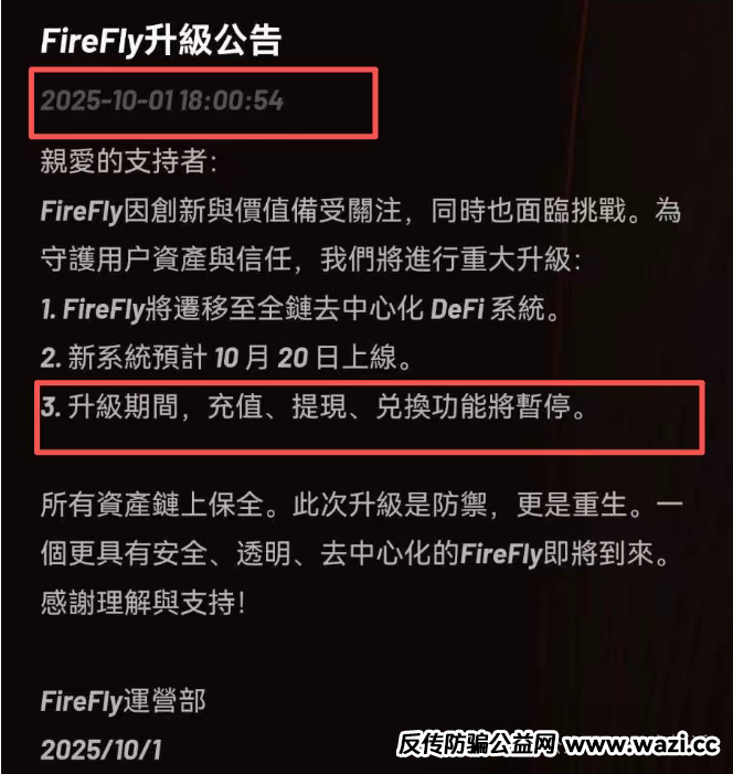 暴雷!【萤火协议(FireFly)】公告跑路!暂停提现!90天收割2亿多美金!