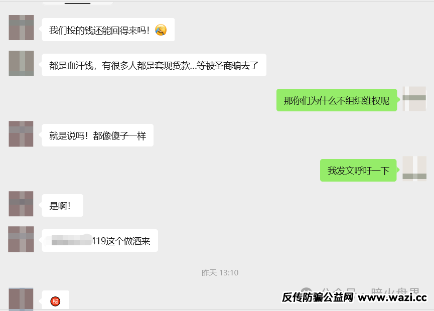 圣商对于过去的事情只字不提,又拉着会员去买酒,据受害者向小诺反映,大部分老会员都不想参与卖什么酒,只想拿回之前的收益。现在参与奇点国峰卖酒的人大部分是后期招募的新代理。很多老代理跟着圣商走了七八年了,不赚钱根本就是心力交瘁,根本没有心情去参与。