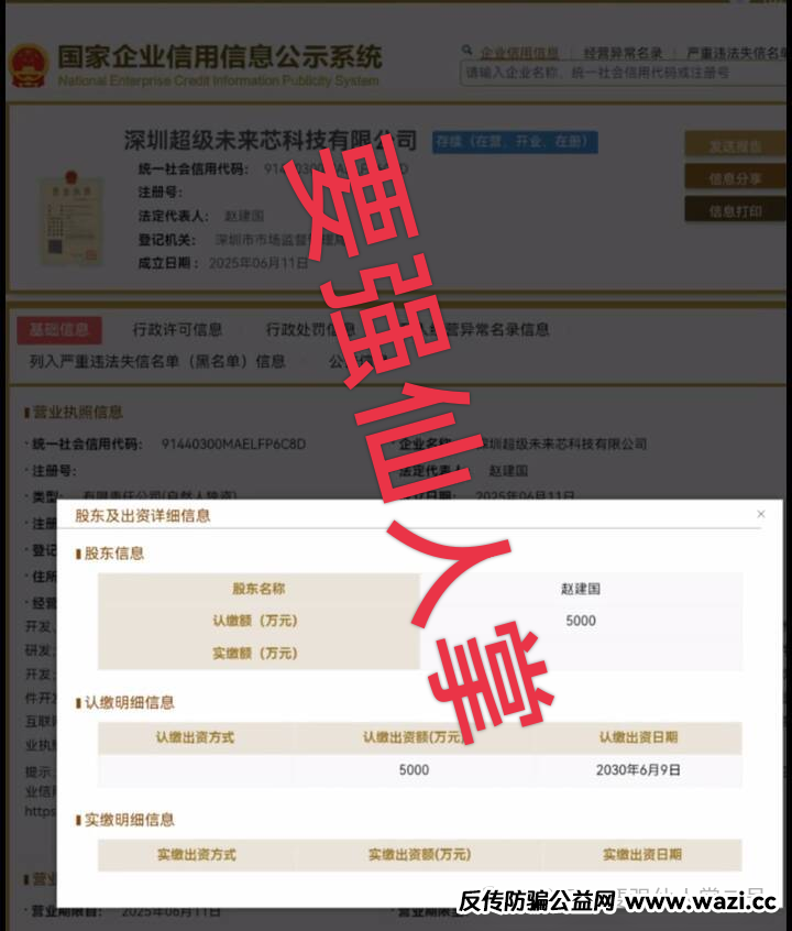 “超级未来”对外吹嘘“公司实缴资金1000万”,还拿出所谓的“验资报告”装门面。但通过企业信息平台查询发现,这笔“千万实缴”早已被全部撤走,目前企业实缴金额为0元!连基本的资金保障都能凭空捏造,所谓的“信用”不过是骗钱的幌子,其圈钱后跑路的意图,明眼人一看便知。
