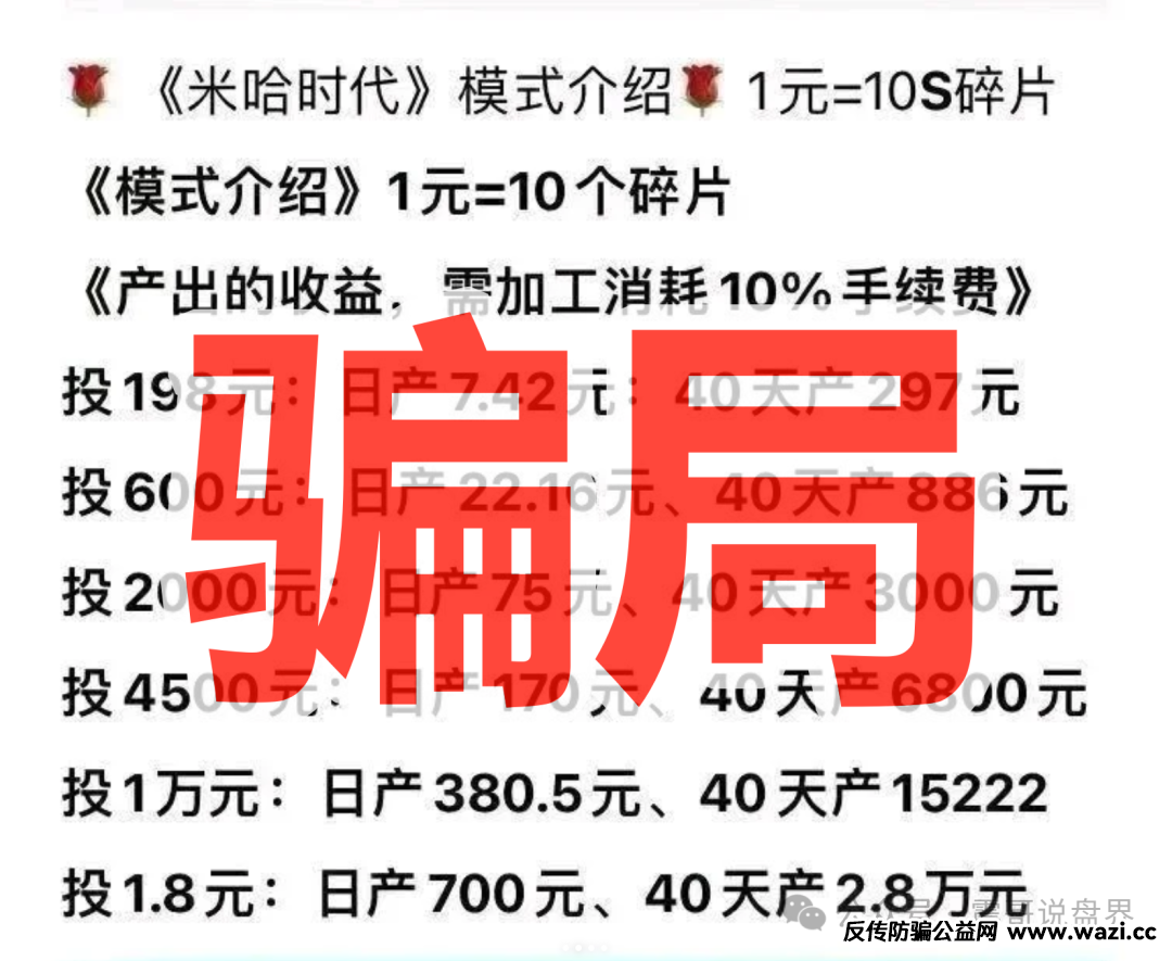 各位老铁,最近震哥收到不少粉丝爆料,说有个叫“米哈时代”的分红盘挺火。但这玩意儿,说白了就是个资金盘骗局,日收益敢吹到3%以上,一看就不对劲。