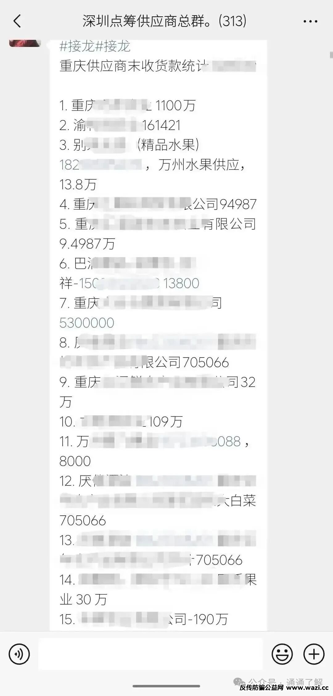 仅在重庆双福国际农贸城就有145位商家遭受损失,被拖欠货款从数万到数百万不等。随着调查深入,这场骗局的全貌逐渐浮出水面,全国约有8000多名受害者,总损失金额可能高达数亿元。