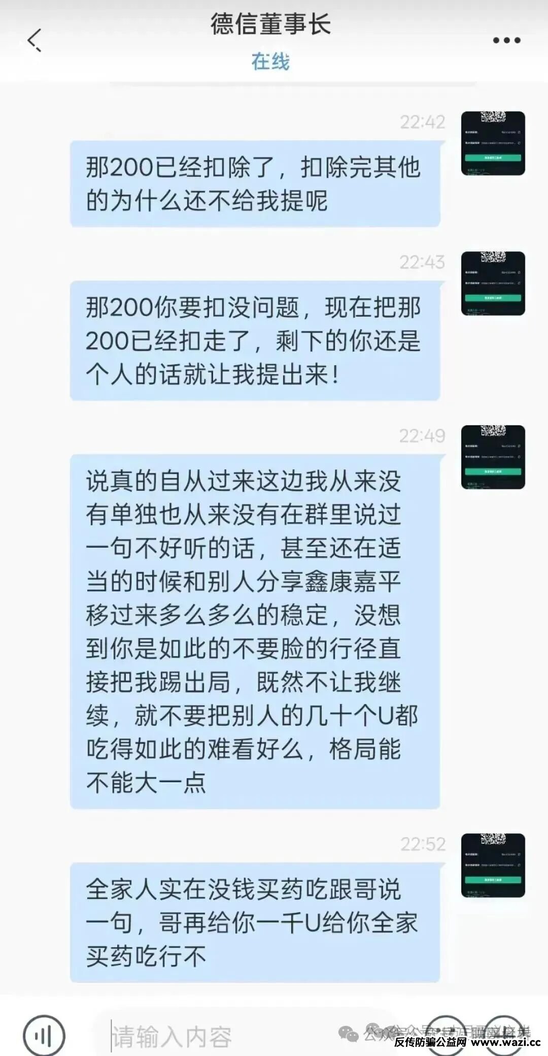 老铁们,震哥今天必须跟你们唠明白这几个资金盘套路! 德信资本,就是以前鑫慷嘉那帮人换个马甲又出来圈钱了,现在已经开始乱割会员,随时准备卷钱跑路! 极光交易所,典型的杀猪盘,专坑...