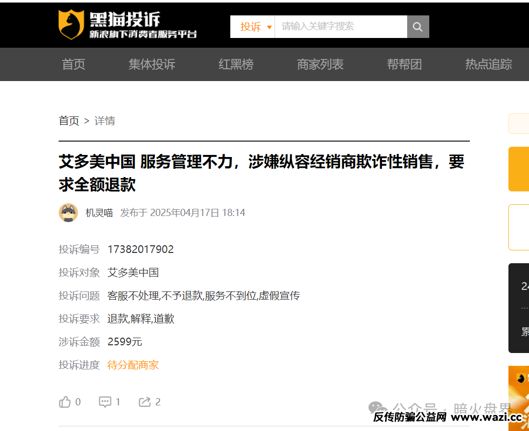 【艾多美】遭消费者投诉退货扣定金,解析销售模式或涉传!...