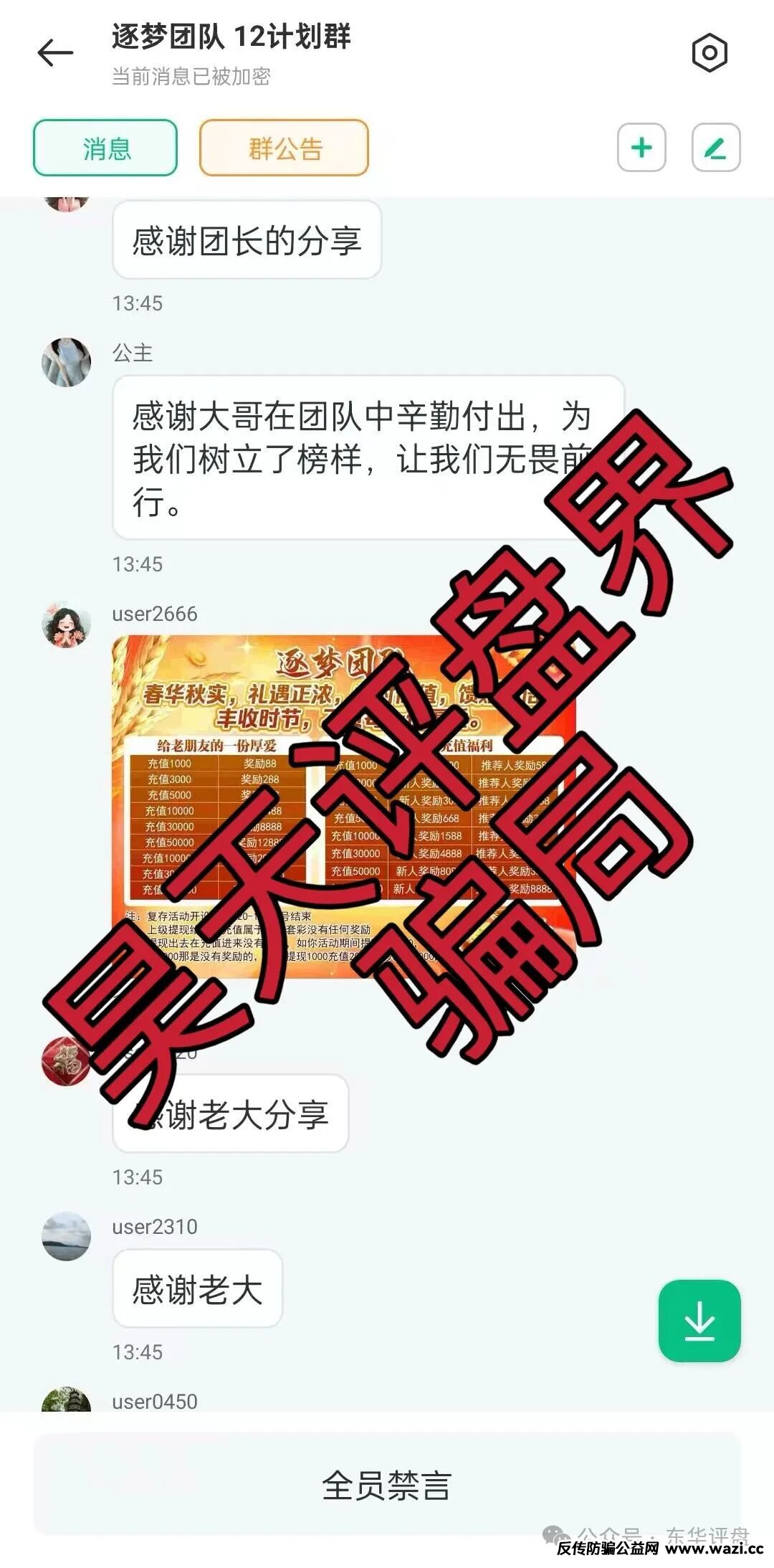要求你注册、充值同时伪造“导师资质”“收益记录”等群里跟单带你挣点,然后让你去拉亲戚朋友,最后冻结账户+失联,完成“收割”,当你再也掏不出钱或想止损退款时,骗子就会用“账户冻结”“操作违规”等理由要求你转“解冻费”进行二次收割,若你拒绝就直接失联让你的所有投入打了水漂,这是骗子常见的收割手段,对于此类资金盘骗局昊天还是建议大家不要碰的: