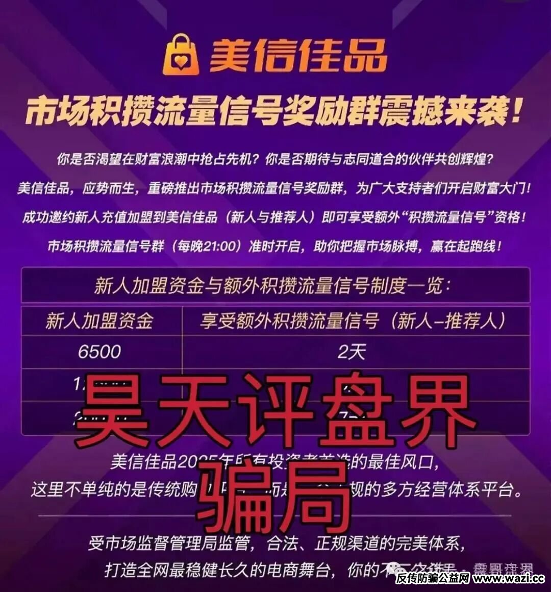 这个美信佳品冒充电商搞跟单分红,其实是个资金盘。开盘半年,现在开始大量收割会员了。操盘手李昊明已经骗了上亿。