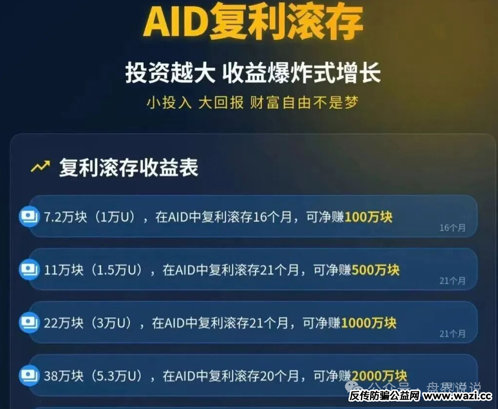 高回报率诱惑:资金盘骗局通常会承诺投资者极高的回报率,远远超出正常投资的收益水平。这些回报率往往是不切实际的,如每月高达 20% 甚至更高,以吸引投资者上钩。