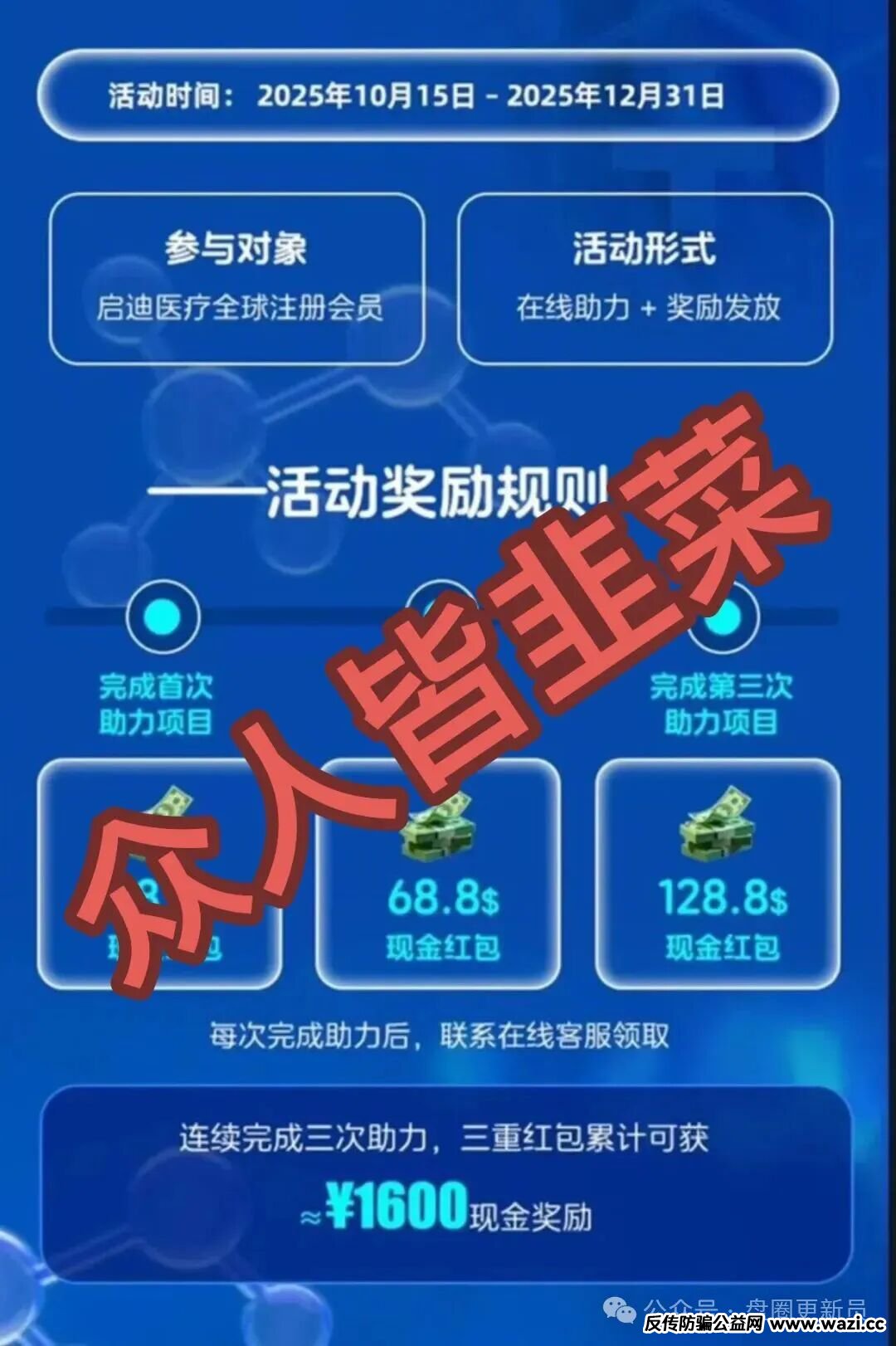 一个叫健康启迪协会的诈骗资金盘,利用投资医疗产品赚钱的噱头,吸引了不少人参与其中,属于分红模式骗局,小编搜索了一下关于这个骗局的信息,貌似在之前就已经单割过。