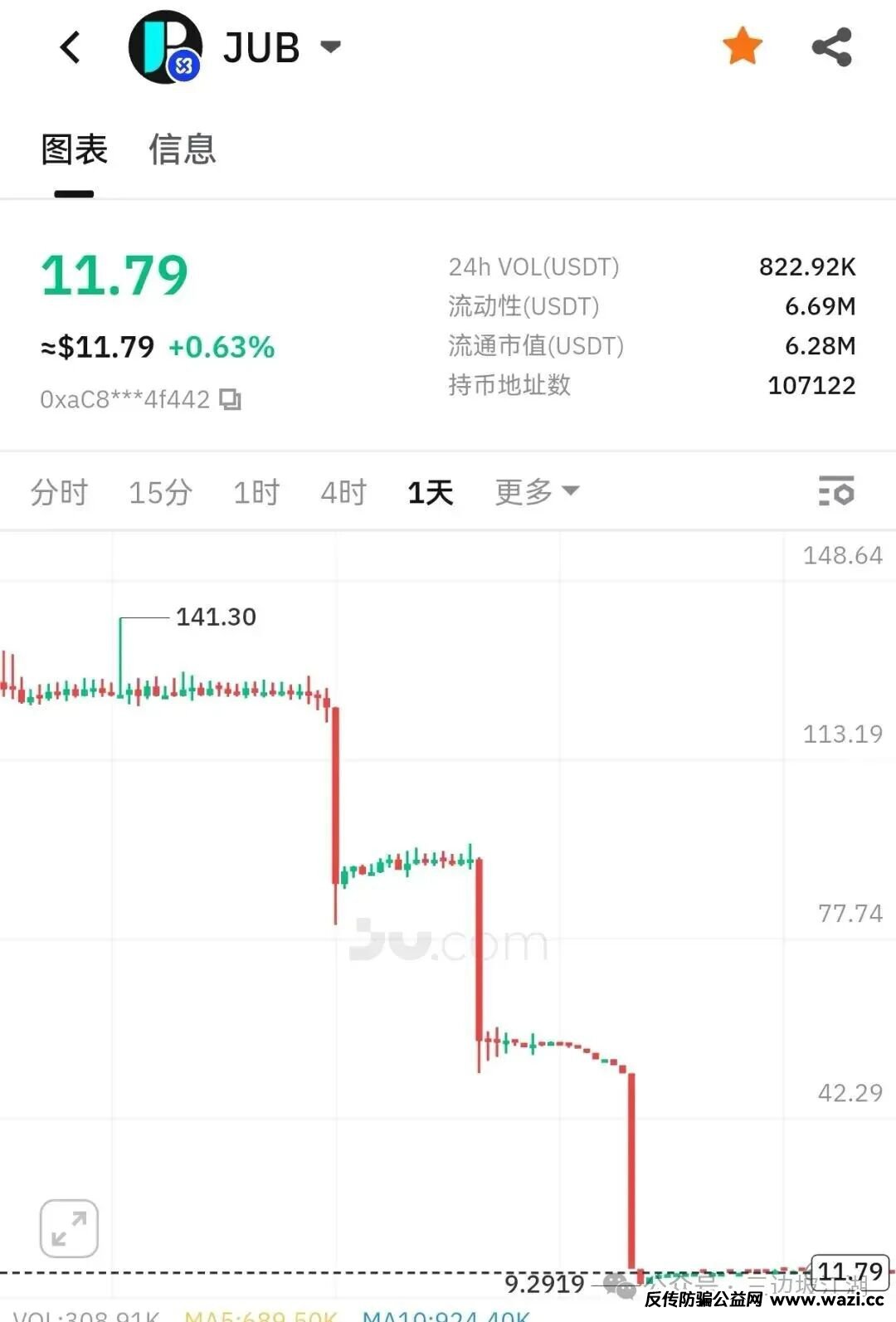 聚币银行JUB更不用提,垃圾项目,明目张胆割韭菜,两个月跌幅超90%。