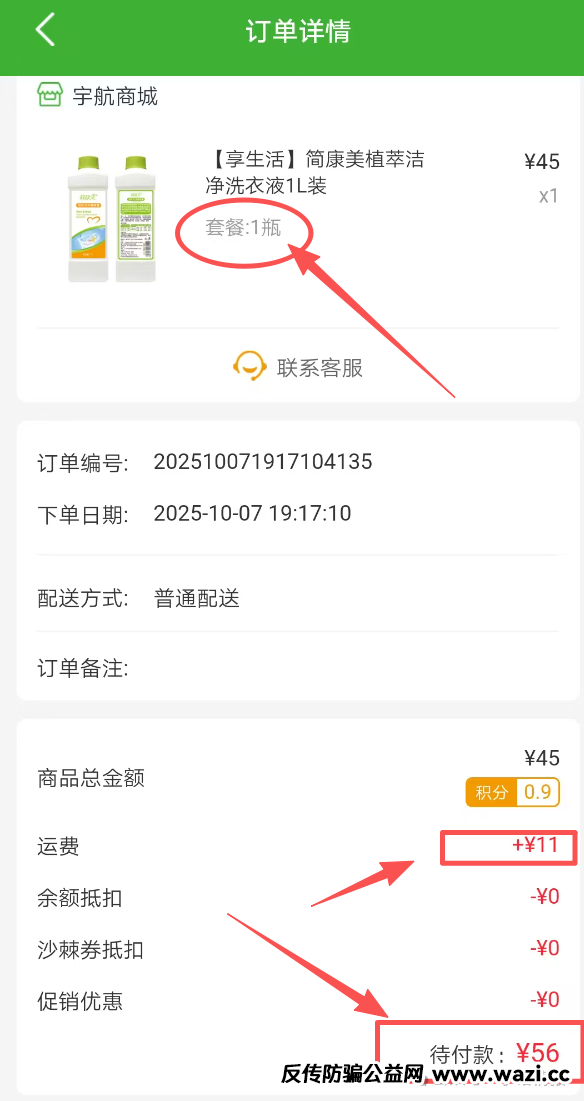 推荐人介绍了这个商城的模式,从听完讲解之后更加确信了这一点。小诺下载注册了“宇航商城”,打开后随便找了两款商品去淘宝上比价,得到的结果可想而知。同样的商品在“宇航商城”中的售价就比淘宝的售价高出接近一倍。就拿下面同款洗衣液来做比较,宇航商城单瓶的售价45元,还要加上11元的运费,商品到手价格是56元。而在淘宝上购买两瓶的价格是32.9元,并且还是包邮的。那么商品的单价就是16.45元,这样一来价格就相差高达39.55元。并且就算按照16.45的单价去销售,商家还是有很高的利润。那么大家可以想象一下这个宇航商城的销售利润有多么的高。
