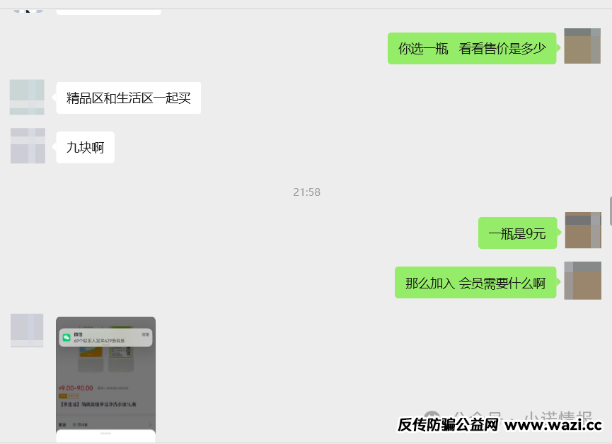 随后推广人员告诉小诺,加入会员后商城商品的售价会降低至会员价。推广人员随后给小诺展示了刚才这款商品的会员价为单瓶9元,算上运费11元,售价也达到了20元。要一次性消费满299元才能享受包邮。并且要加入会员最低需要在商城购买2000元的商品。大家想想20元的价格也要比淘宝的售价高出不少。