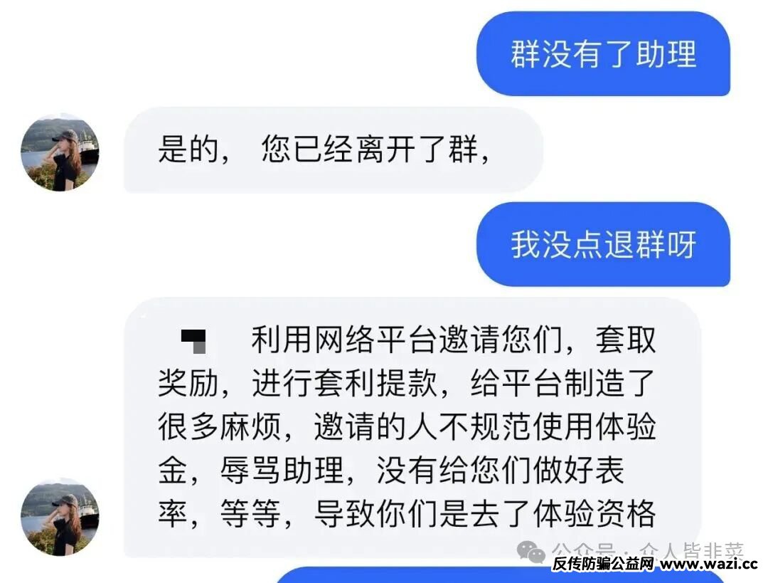 体验金就是鱼饵,等人上钩了就催你充值。群里天天有人晒转账截图,那都是托。等他们把有充值意愿的筛选出来,白嫖的就被清理掉。
