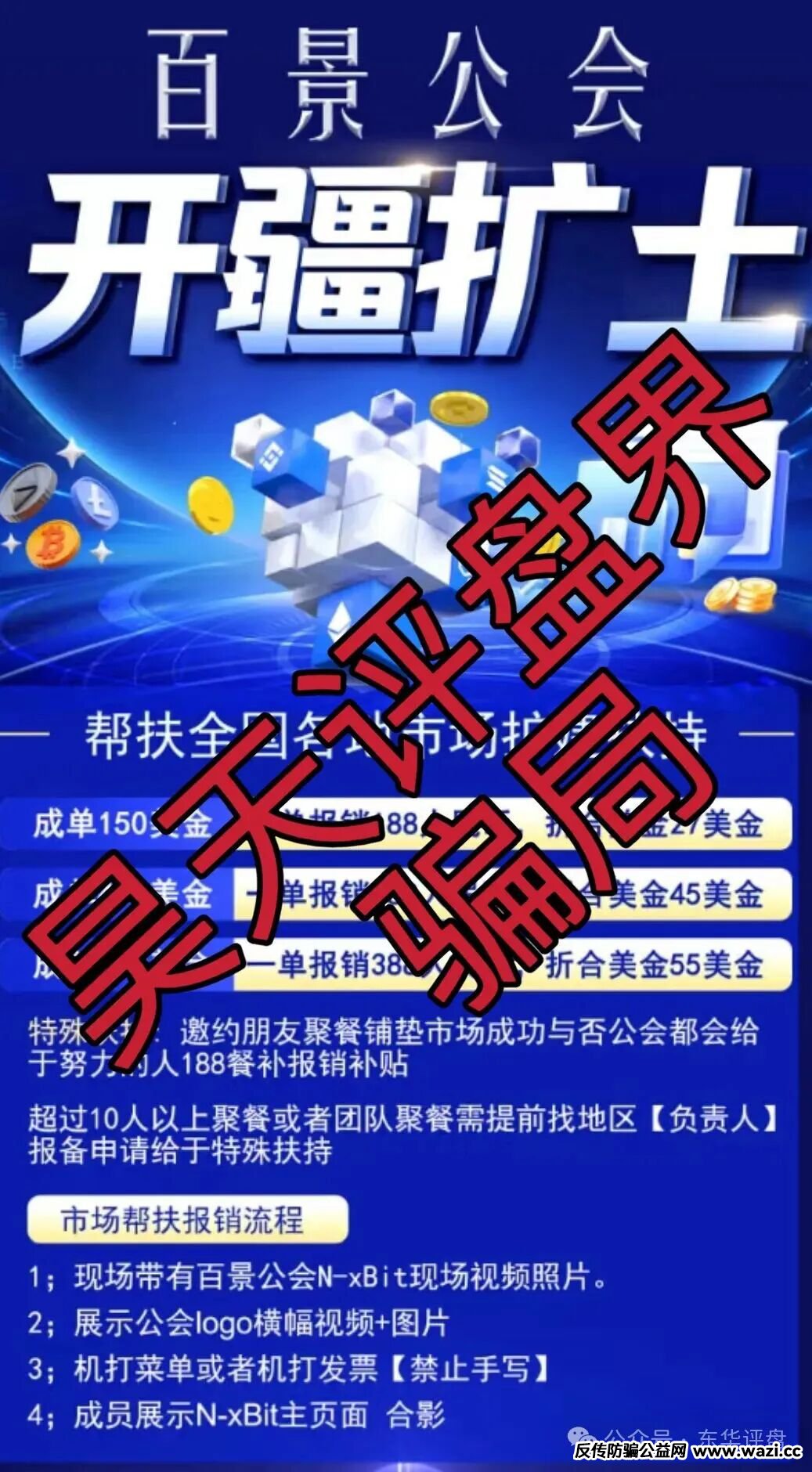 此资金盘骗局诈骗团伙打着专业指导、高额回报的幌子,诱导投资者跟随所谓的 “交易大师” 进行合约交易。在华丽的承诺背后,却是精心设计的陷阱,诈骗团伙以 “财富梦想” 为诱饵,设置 150 - 15000 USDT 的新人入金梯度,绑定丰厚奖励诱导小额试水后加大投入;构建 “推荐人 - 上级” 奖励与 “合伙人分红” 体系,靠直推人数和团队规模晋升、承诺豪车房产等奖励驱动拉人头,用新成员资金维持 “收益”,诈骗团伙现在还在群里洗脑中,邀约朋友聚餐铺垫市场成功与否公会都会给于努力的人188餐补报销,超过10人以上聚餐或者团队聚餐需提前申请给于特殊扶持要求现场带有百景公会N-xBit现场视频照片进行洗脑,目前也是开了不少工作室了: