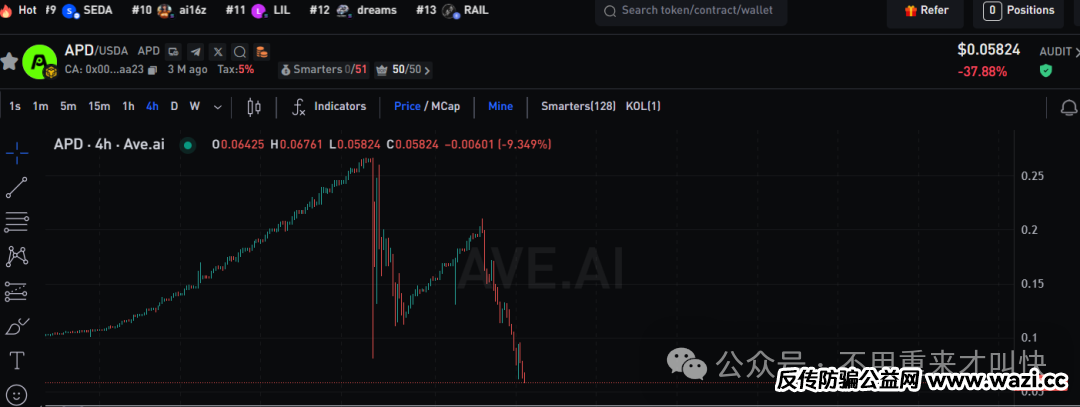 前文村长给大家写过这个项目,当时的文章:爆雷!“自由狗”崩盘后,暴涨百倍的地推神盘APD,也崩盘了,价格暴跌80%,直接凉凉!大爷大妈血本无归!
