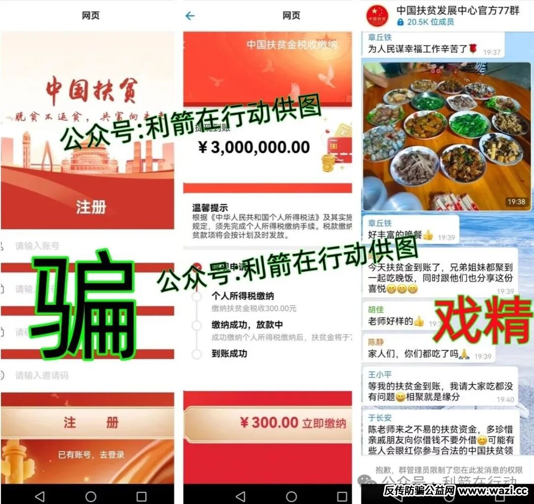网络中有个“中国扶贫”APP,该项目宣传:只要“实名认证注册,提交自己的身份信息,就能领取300万元的扶贫款”,不过领取300万元“扶贫金”需要缴纳300元钱的“个人所得税”,昨天是最后一天交虚假的“个人所得税”的时间,超过了时间就全部作废,不能再领取300万元“扶贫金”了,这明显就不对劲,要知道真正的个人所得税都是在收入中直接扣除,税后所得打到收益人账户上.................