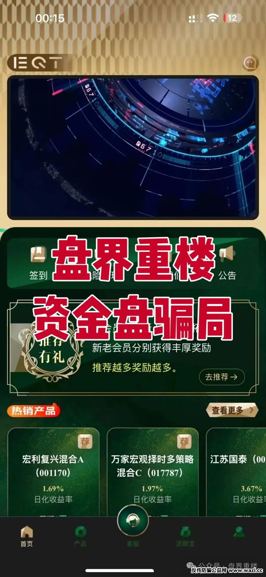 这年头,连诈骗都开始卷复利了。一个叫“EQT财富计划”的平台最近疯狂刷屏,打着“欧洲顶级私募殷拓集团(EQT)中国区项目”的旗号,宣称日化收益1.6%,算下来月收益直接飙到50%以上,年化轻...