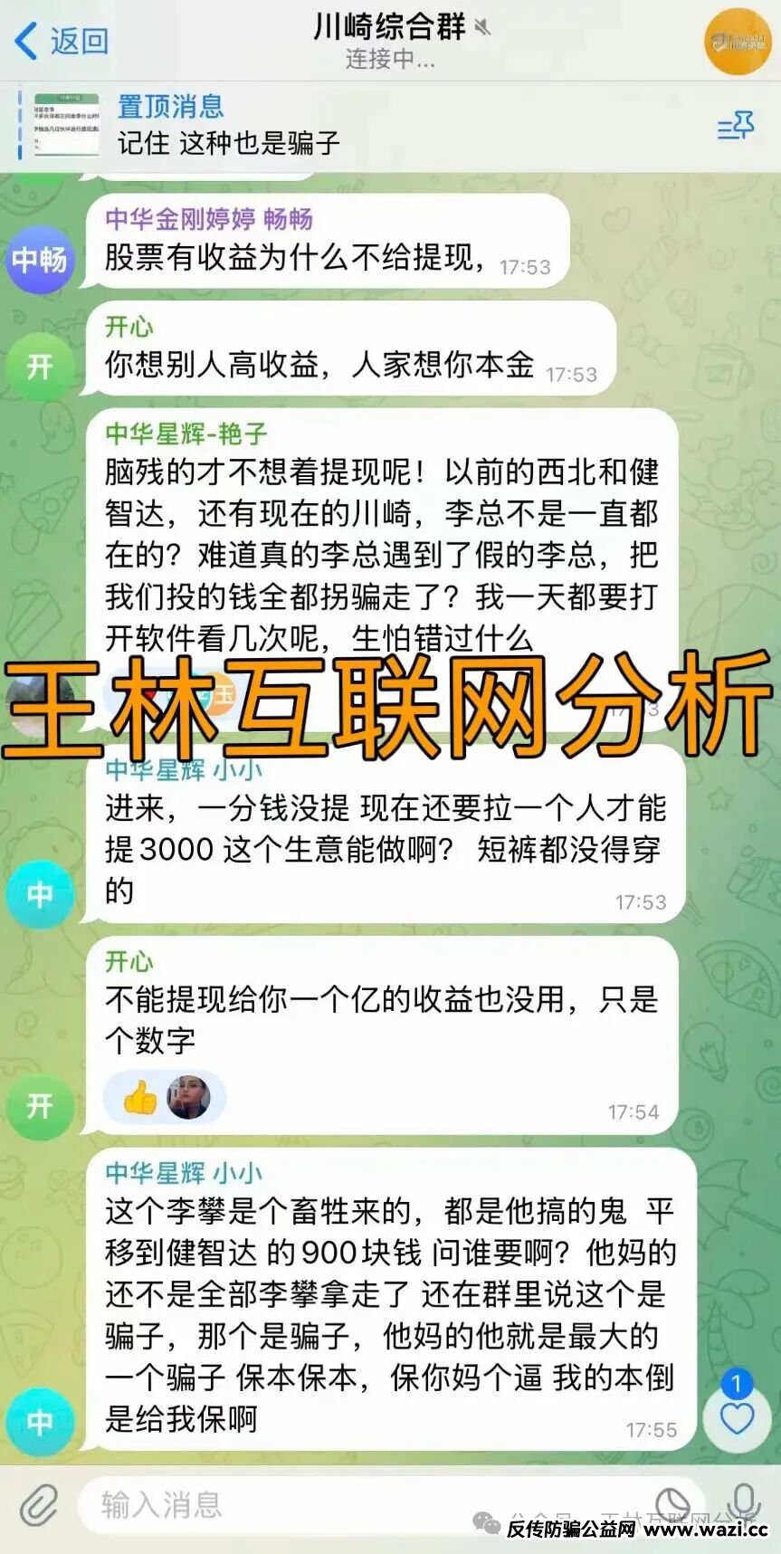 股票跟单类资金盘骗局,第三次收割已经结束,从“西北资管”到“建智达”再到“川崎资管”,这几天又崩盘准备平移去新盘割新韭菜了,看见一定要远离!