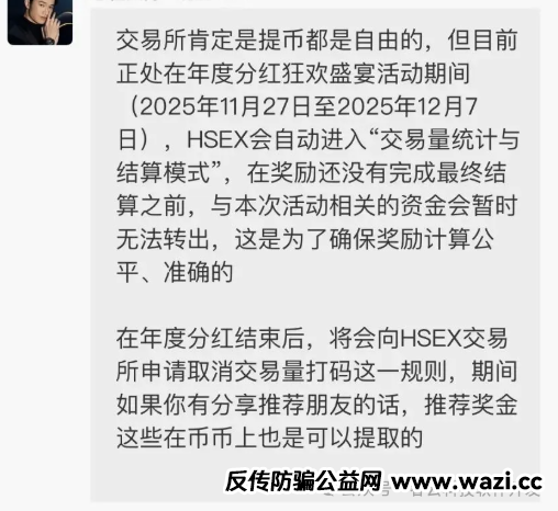 更令人担忧的是,平台一边限制提现,一边鼓励用户继续充值,并以“完成交易量即可解锁提现权限”“充值返利”等话术诱导用户追加投入。此类操作模式高度符合非法集资和资金盘的典型特征。