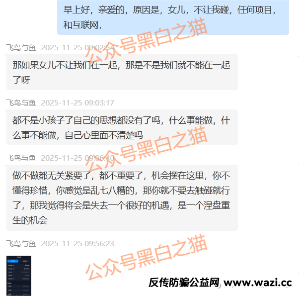 引流到某个聊天软件继续每日的问安,逐步达到夜不能寐地步,直接在称呼上暧昧的变成“老公老婆”。