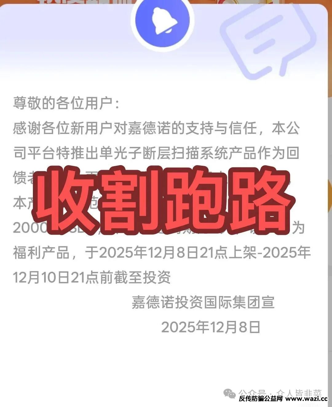 八号平台发公告,推出大额投资福利产品,最低投资1500u,最高20000u,纯收割韭菜的,该诈骗平台上线没多久,就已经收割跑路,短命盘骗局。