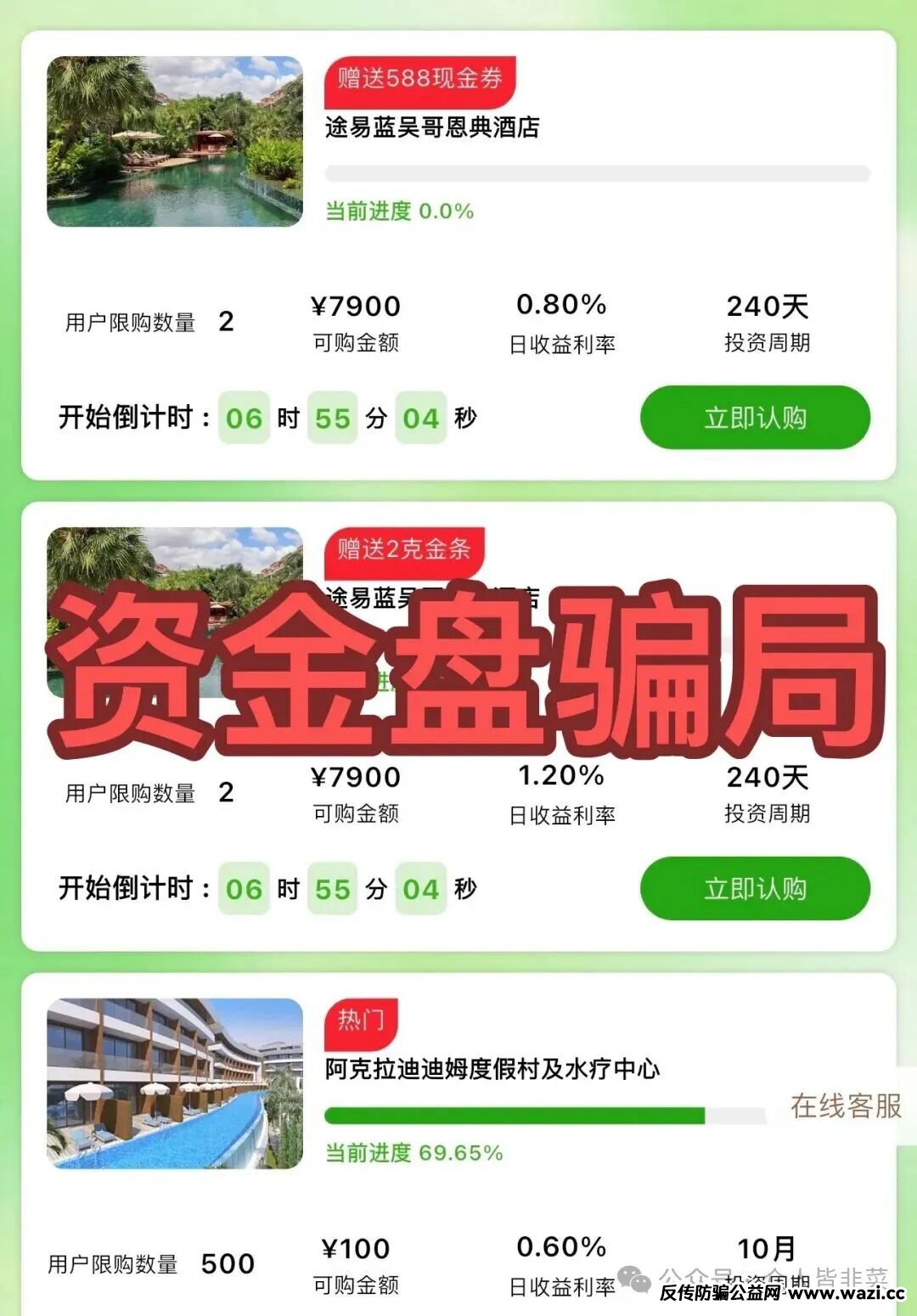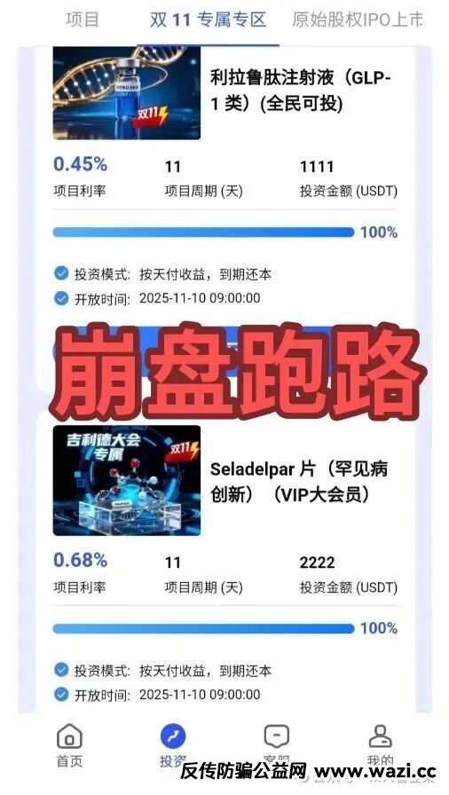 短期大额产品当诱饵,不知道又要有多少韭菜上当受骗,这阵子崩盘跑路的资金盘数不胜数,远离!
