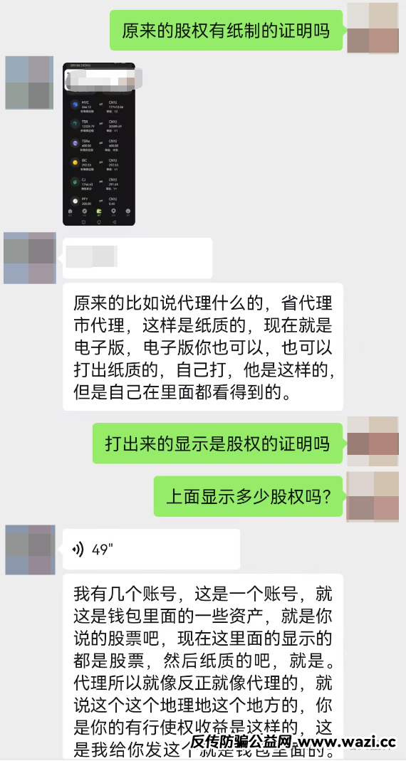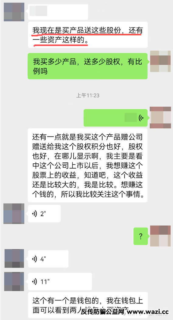 下面是小诺和秒音科技的推广人员的微信对话截图,对方跟随秒音8年,可以说被洗脑洗的很彻底。他跟小诺说秒音要上市了,现在买产品加入进来就送股权!并给小诺展示他自己曾经过得的股权证明。