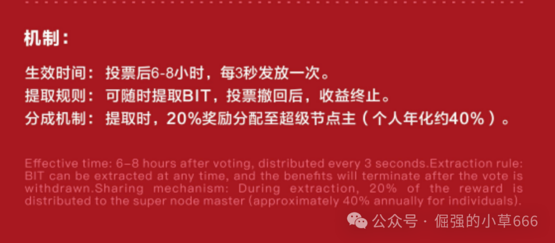 一是静态收益设计极具诱惑。用户需质押BIT代币,6至8小时后开始计息,收益每3秒发放一次,号称年化可达40%左右,且支持随存随取。但如此高频的收益发放,显然不符合正常金融逻辑,只能靠不断涌入的新资金维持。