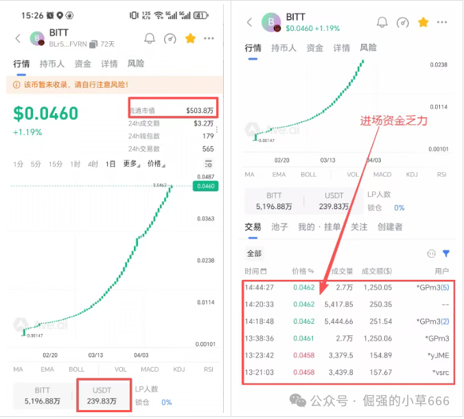 最致命的风险来自链上数据。当前BIT的流通市值为500万U,意味着用户投入的本息总额已达此规模,但底池资金仅有240万U,资金覆盖率不足48%。换句话说,若所有用户同时提现,平台连一半的兑付能力都不具备。这种严重资不抵债的状态,正是庞氏骗局即将崩盘的明确信号。