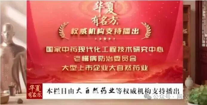 节目一开场,“国家中药现代化工程技术研究中心”“老慢病防治委员会”“大型上市企业大自然药业”“江西省药物研究所”等权威机构名号滚动播放。