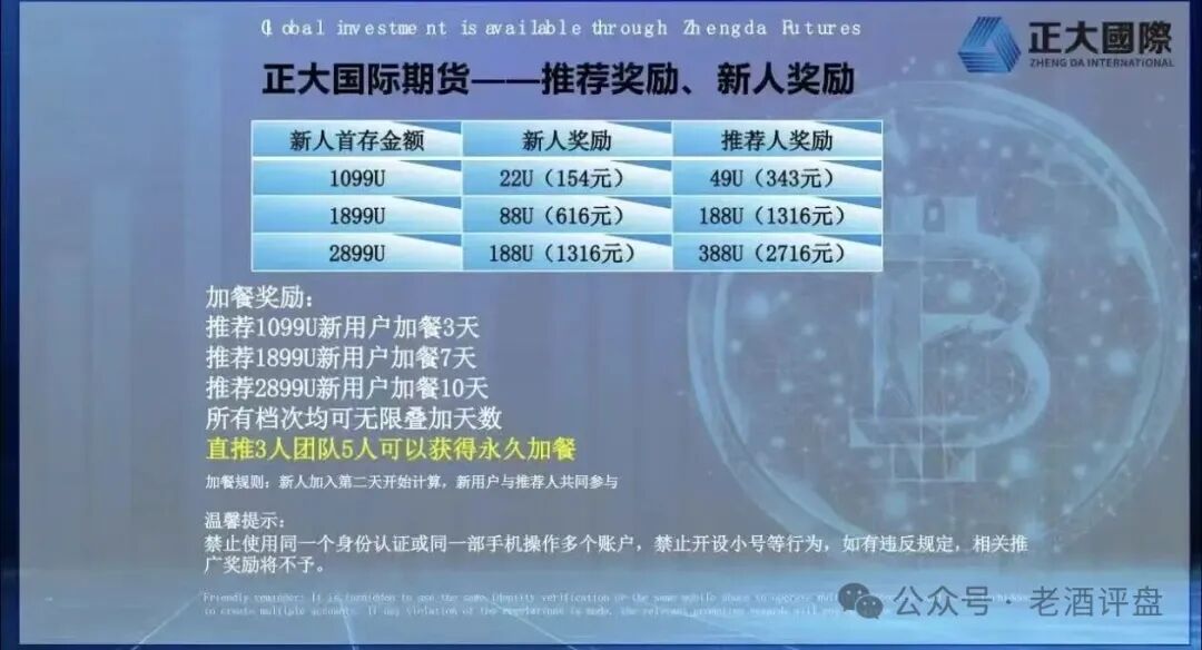 接下来给大家拆解一下正大期货的后台模板以及奖励制度,整体框架和鸿运万交所几乎完全复刻,妥妥的换汤不换药,只不过是换了一层新马甲继续圈钱罢了。平台嘴上高调宣称不招收任何网推人员,可实际操作却截然相反,只要你愿意充值入局,平台来者不拒,根本不会做任何限制。越是刻意做出这种表面姿态,就越能看出此地无银三百两,明显就是在刻意掩饰背后的收割套路。